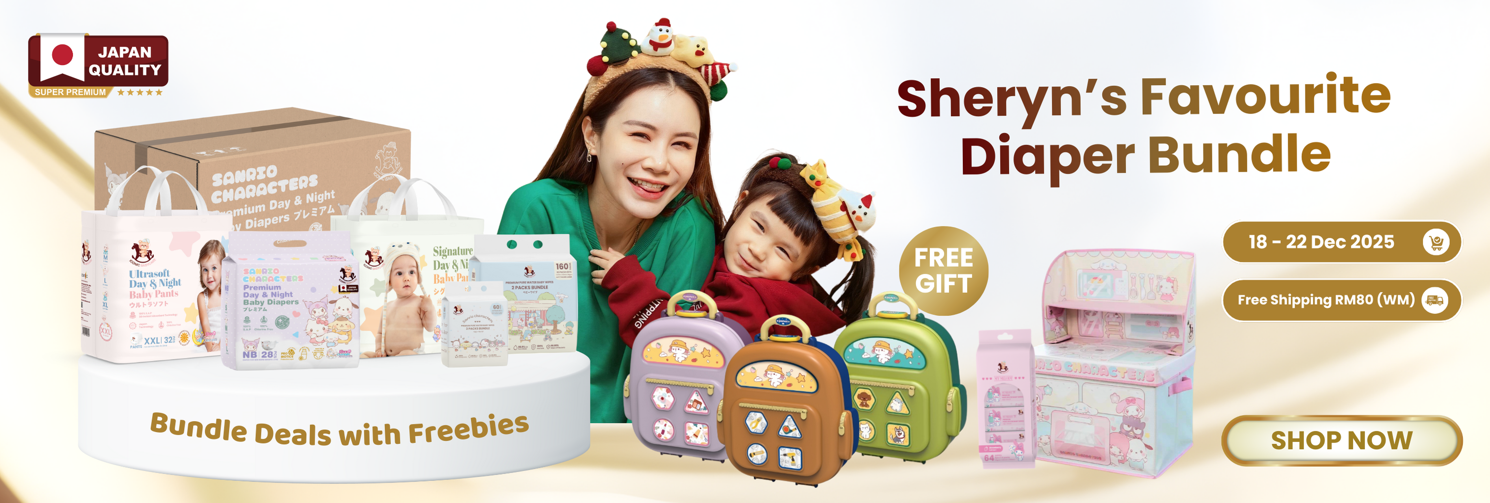 [Sheryn's Bundle 1] Sanrio Premium Day & Night Baby Diapers Tape/Pants (S-XXL) & Baby Wipes